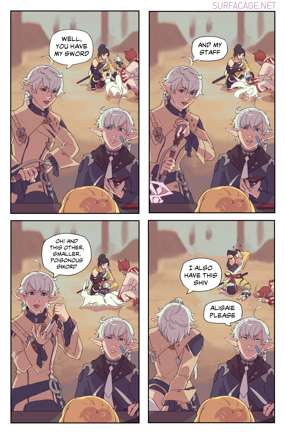 Surfacage: I think it’s because it’s my way of engaging with the FFXIV fandom, like some people discuss plot points or make theories, I contribute by making those kinds of comics. Some people echo the sentiments so I’m glad to make a way to visualize how other people’s characters feel.