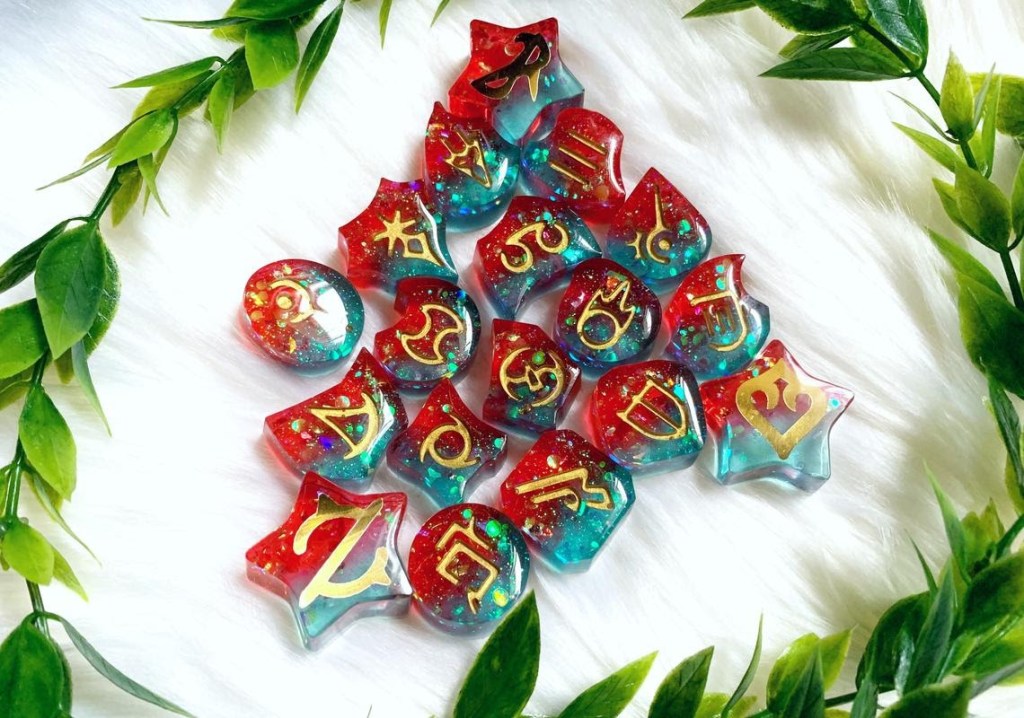 Sorin, along with several other crafters, recently created a Discord server for all FFXIV crafters, from resin to sewing to woodworking and everything in between. Check out the FFXIV Crafter Hangout Discord if you’re an artist looking for a supportive group of fellow creators, or even a fan wanting to follow what FFXIV’s most inspiring crafters are creating! As Aspectedlove pointed out in her interview, many resin artists create pieces other than soul crystals. Sorin, one of the Crafter Hangout moderators and an experienced resin caster, also specializes in dice, brooches, charms, and jewelry, giving FFXIV players a variety of ways to express their love for their Warriors of Light and the game they enjoy.