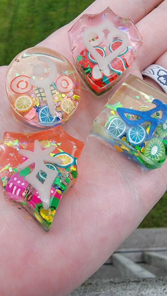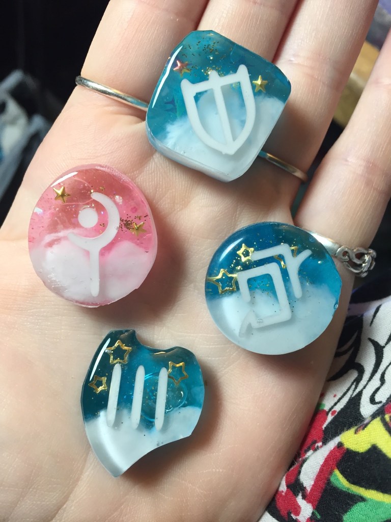 Many of the lessons shared by the resin casters came about by happy accidents, or necessity, but some lessons are learned the hard way. Jezziepop was a plethora of knowledge from her extensive work with UV resin—including some of its tricky downfalls. She explained that “mixing too much pigment” into UV resin darkens the resin to a point that it will “never fully cure.” The UV light used to cure UV resin cannot penetrate through the piece fully when mixed with heavy amounts of pigment, “leaving you with a pocket of uncured resin encased in the cured resin,” which could easily pop and allow the uncured resin to ooze out of the piece. She also advised to “stay away from not clear molds if using UV resin,” as the danger of the piece curing unevenly increases the trickiness of the process significantly. “Using the ice tray molds with UV resin is actually really tricky, and props to those who do it so flawlessly,” she added, once more acknowledging the vastness of techniques that casters utilize to create their pieces.