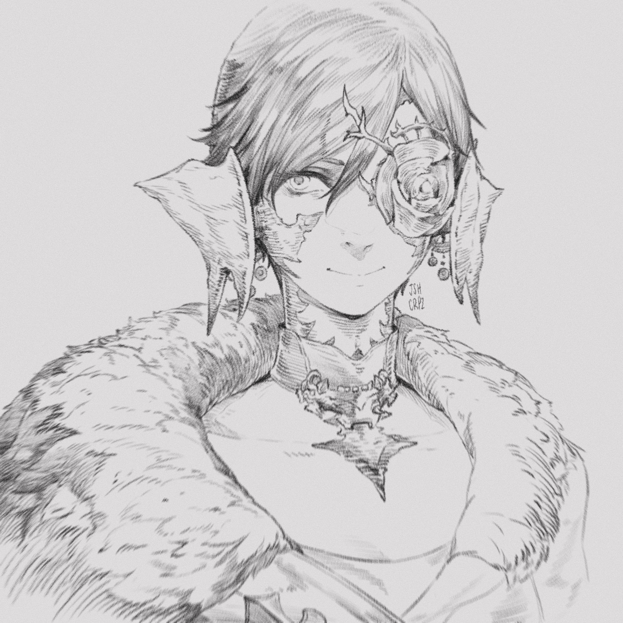 JSH: I put heavy emphasis on the character’s face and the patterns on the armor and clothing and try to incorporate those whenever I’m working on an FF14 commission.