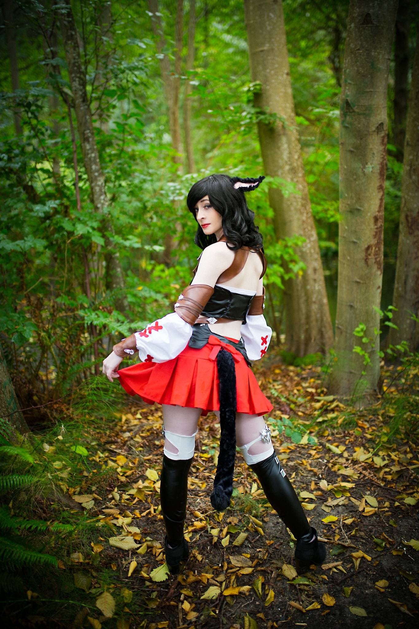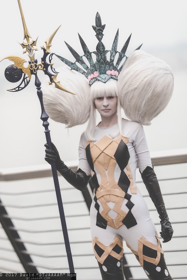 Even more impressive than the final product, however, is Loratail’s commitment to adaptability in their work. Final Fantasy designs are often frustrating to translate into tactile reality, but with a few tweaks, they made the spear easier to construct and use while in cosplay. They say that the spear “remains one of our proudest works and it embodies our cosplay philosophy of allowing for slight alterations in design to make either wearing or construction a bit easier.” The sharp edges of Scathach’s spear and the detailed weathering of her crown are the extra details that elevate the final product, and only a very close comparison would reveal the minute differences between prop and in-game design, making the cosplay not only impressive but also manageable to transport.