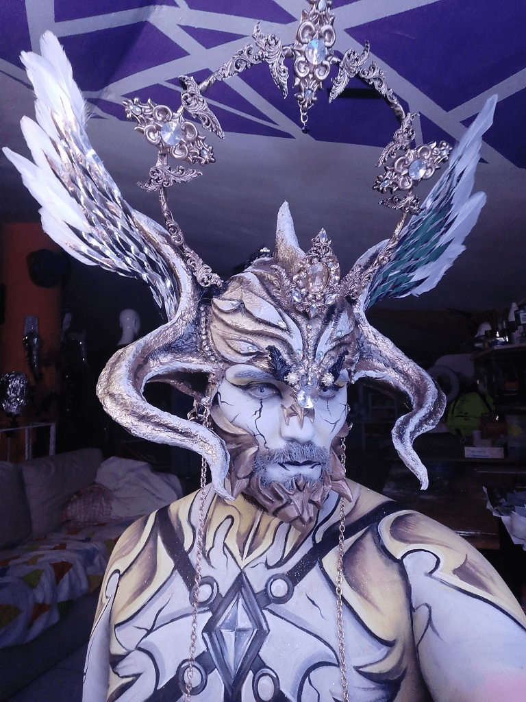 Grievervsk: Yes, absolutely. At first I asked the artist which I followed a long time ago, @LoryDraws—which every design is mind blowing—if it was okay to try and make her character into body paint. Then I tried to make the headpiece as light as I could then just try to replicate her work on my body.