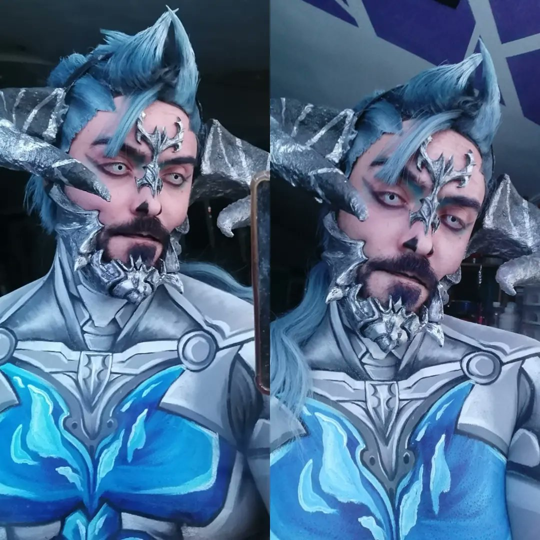 Grievervsk: It all comes with a little bit of imagination and perception of what I want to create, how I want to end the look, and how can I adapt the 2D character to my body in IRL; just pure imagination and perception of, “How can I do this amazing flipping art to self bodypaint (always asking for permission to the original artist), and how can I replicate it respecting every decision that the artist decided to make while creating their original piece?” For example, a while ago I asked @itsmeishmi for permission to make Ori Ishmi’s OC in the Bard art, which I translated to self bodypaint.