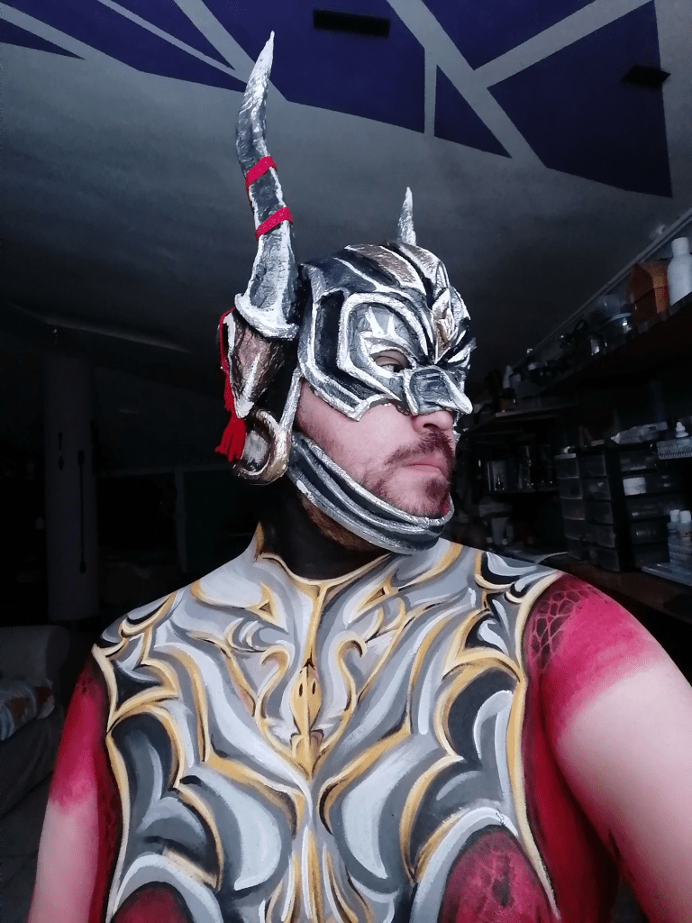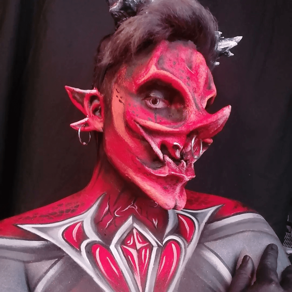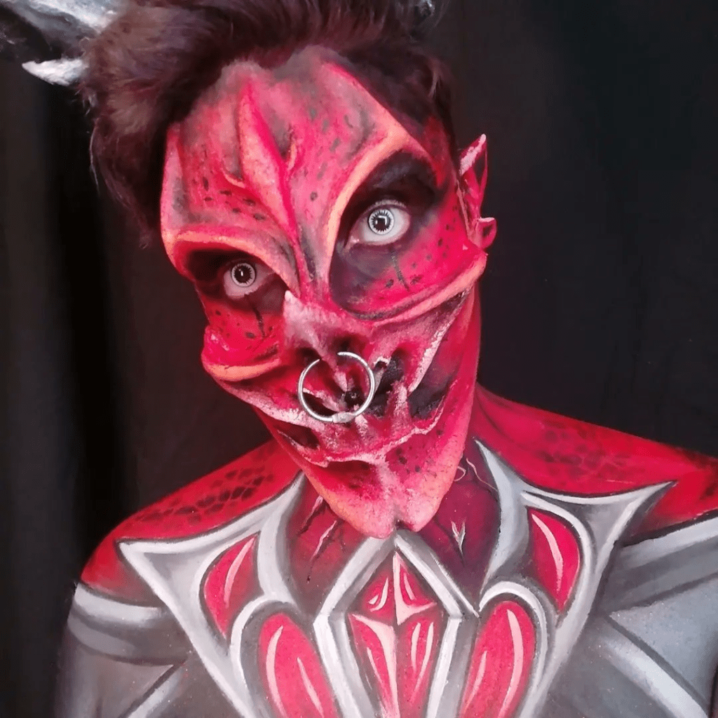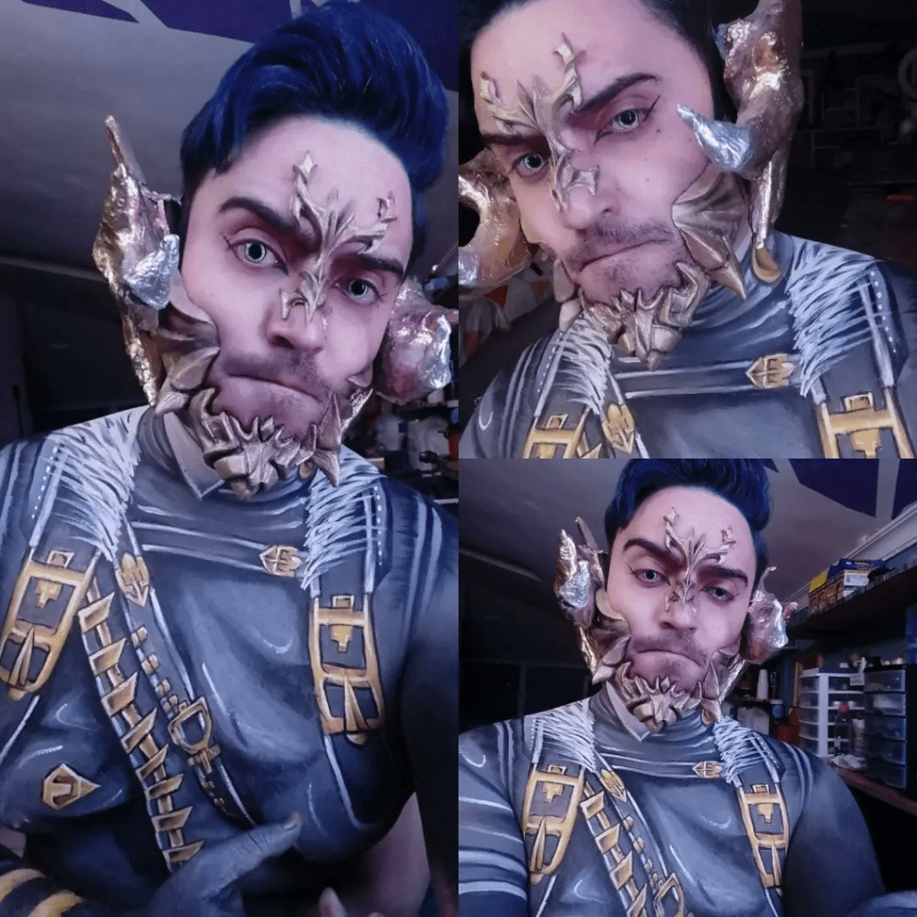 Cosplayers use an endless variety of tools and techniques to create their costumes. With a bit of know-how and patience, foam, paint, and fabric can transform a cosplayer into almost any character of their choosing – but what about a cosplayer who chooses to create that transformation directly on their body? Painter, sculptor, makeup artist – Grievervsk’s work could fit under many categories, and for him, that mix and meld of techniques that bring his visions to life is totally by design.