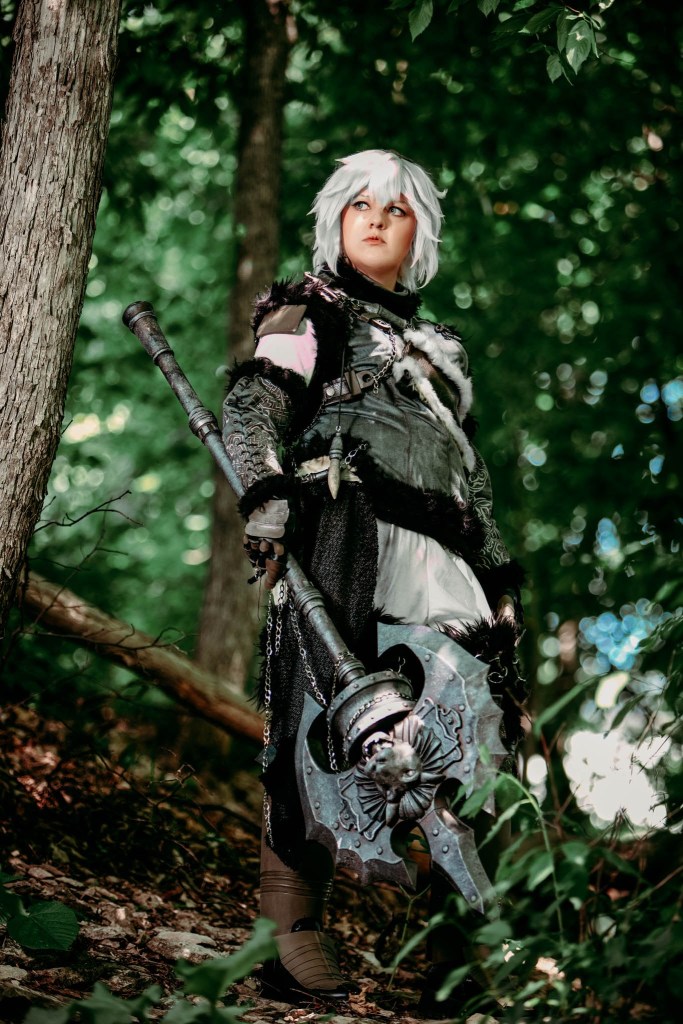 And I think if whoever is reading this is like, interested in that sort of thing, I would suggest looking at a lot of film and television costume design for fantasy and non-fantasy, and reading analysis about symbolism in color and silhouettes from that regard – even fashion runway, like couture stuff, is part of a ‘theme’ or ‘message’ that’s being sent about a collection, so look there too. And from a cosplay perspective, just thinking about “would they take care of their stuff? Where do they live? What materials could they realistically get a hold of?” are all good questions to make your own choices on costume materials and techniques.