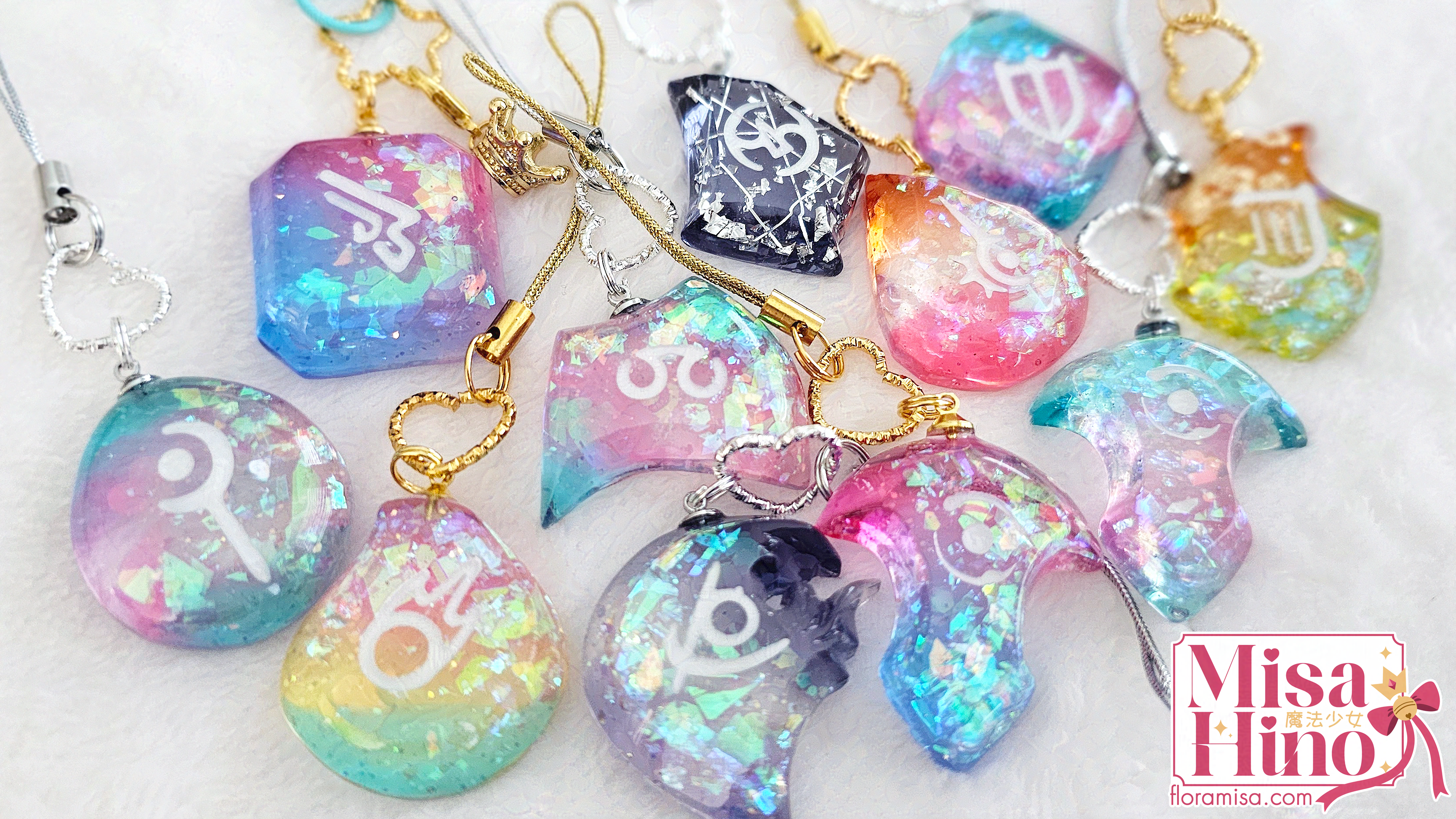 When it comes to my own designs, I keep a spreadsheet of themes I’m currently working on but also themes I want to work on in the future. There is a public version of this spreadsheet in my product catalog. My private spreadsheet includes details on all the colors and materials I want to use, including a brief description of what I envision. It may look like I work with many materials, but there’s always a constant formula: The base resin mix, glitter mix, 2-3 inclusions (glitter flakes, gold/silver foils, pearls, metal charms, films/stickers, etc.), and the final varnish layer. I try not to add too much to one stone because I don’t want them to appear too busy.