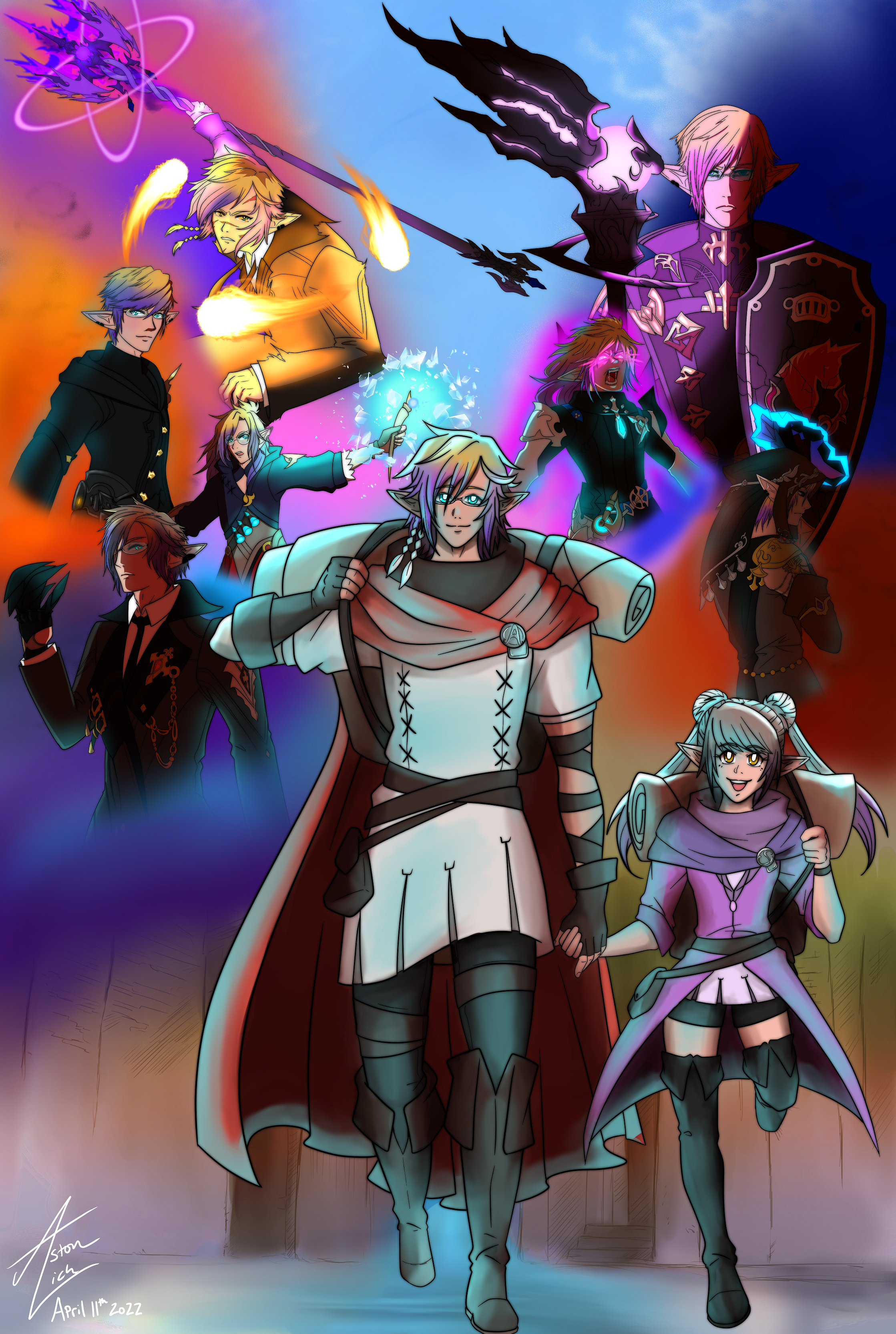 There’s a piece that I’m still super proud of, one that took me a couple of weeks to do. It was my version of the Patch 6.1 – Newfound Adventure key art. For someone who has been playing FFXIV since 2014/2015, Endwalker was a very personal journey to me, especially with how bad my mental state was when it came out. Closing the chapter of 6.0 and a brand new story starting in 6.1, it felt like it was telling me it was OK to move on, that everything will be OK. So in my version of that key art, I drew my WoL, Aston, and how his journey has been throughout the years. It was also a very personal piece for me because it showed how much I grew as a player since I started playing and how much I loved this game. I learned a lot of new techniques for this piece as well and learned how to properly use Clip Studio Paint. Although it’s a 3 year old piece at this time of writing, it’s still my favorite art piece that I’ve done.
