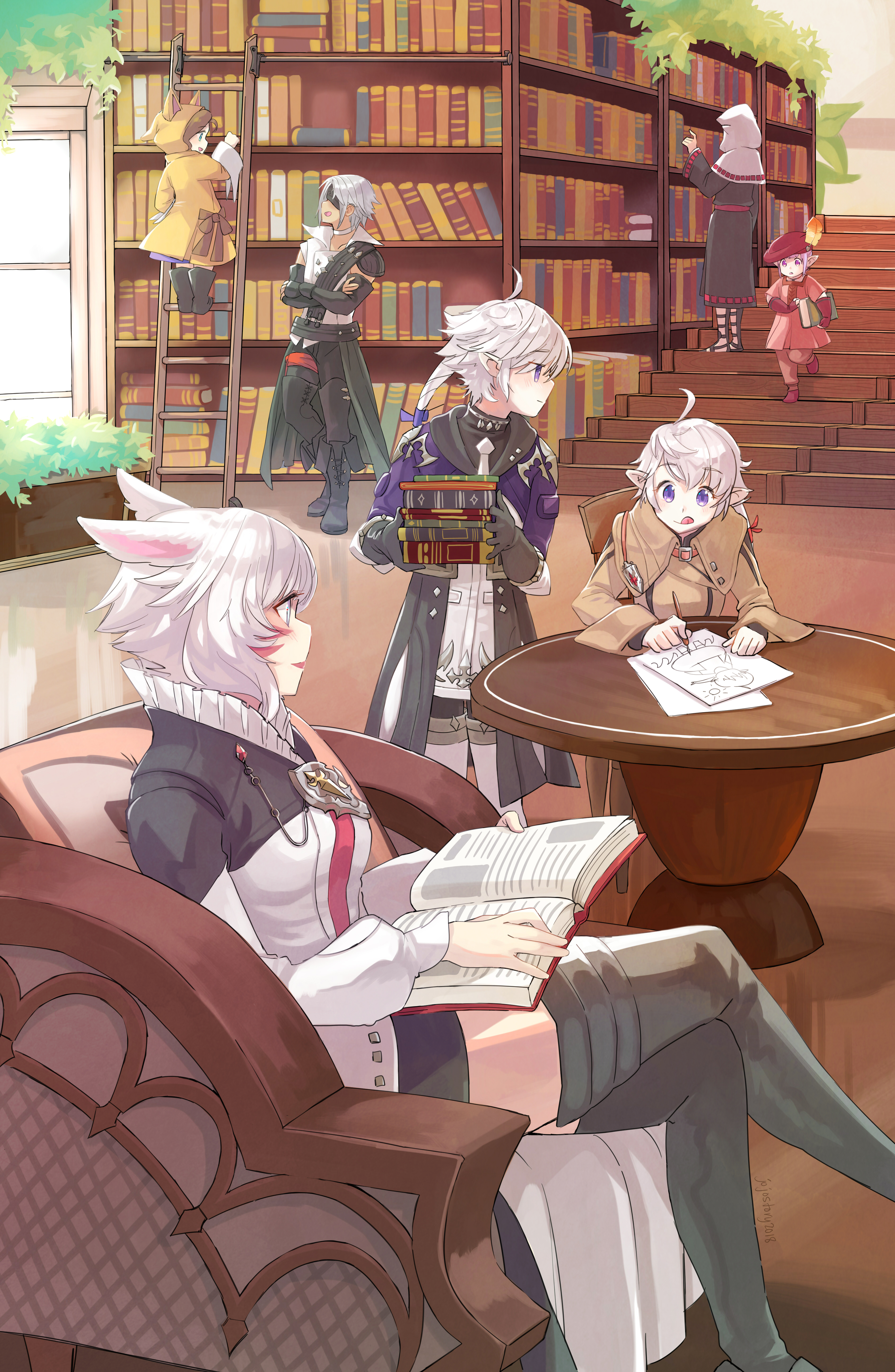 The illustration of the Scions sharing a peaceful moment in a library was something I drew for the FFXIV Fan Fest Art Contest in 2018. I had never drawn so many characters sharing the same physical space before, so I really struggled with believable perspective and balancing the amount of detail throughout the composition. I’m proud of myself for trying something new! But most of all I’m proud of how I drew Y’shtola in that illustration, somehow she turned out really pretty (at least, I think so).